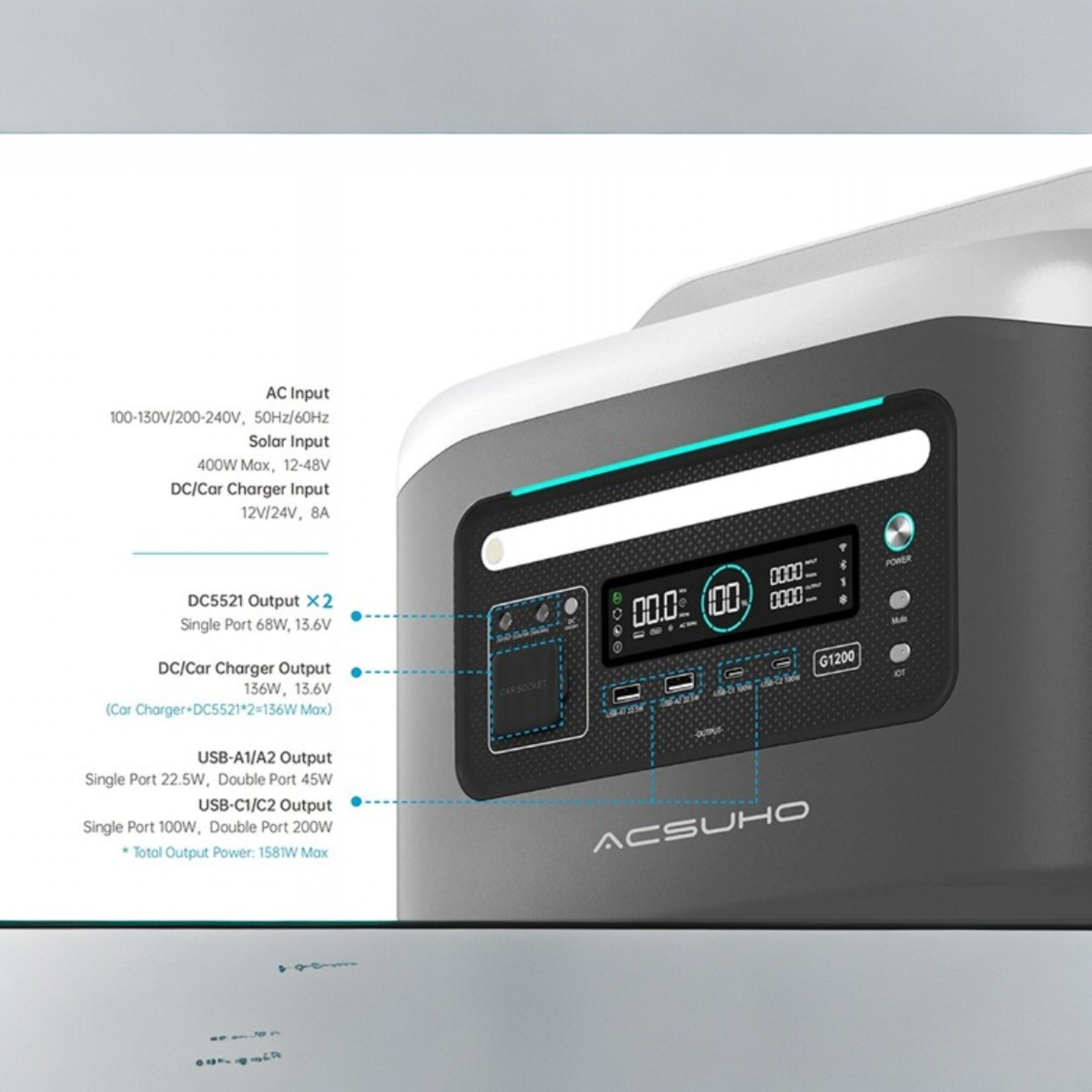 With multiple output ports including AC, USB-A, USB-C, and 12V DC, you can charge everything from laptops and phones to fridges and power tools. It recharges fast via wall outlet, car charger, or solar panel, and operates silently without fumes, perfect for indoor or outdoor use. Rugged, efficient, and built for Aussie conditions, the G1200 is your go-to mobile power source.